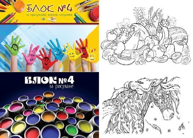 блок №4, корица от 400гр картон, с картинка за оцветяване на гърба, пълнеж 10 лст.